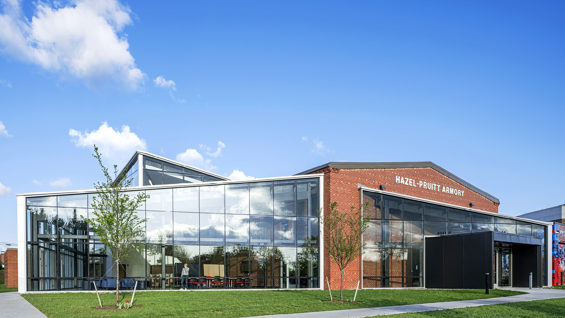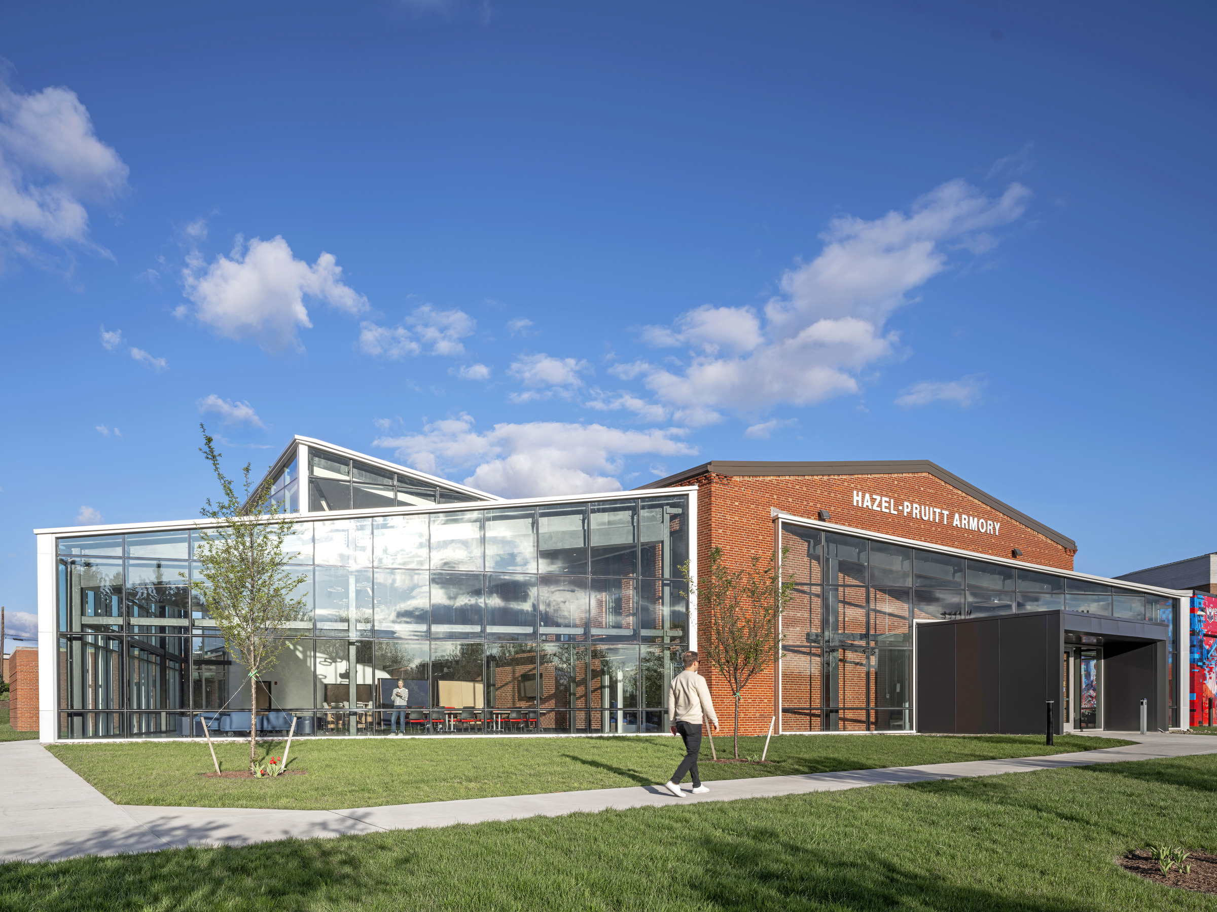 The Hub for Innovators, Veterans and Entrepreneurs (HIVE) revitalizes a historic armory in Winchester, Virginia. Originally built in 1940 for the National Guard for World War II, the building also served the community with events like dances and concerts, including one by Patsy Cline. Through the building’s preservation, this adaptive reuse project pays homage to the past while igniting possibilities for the future through the new student-centered community spaces.