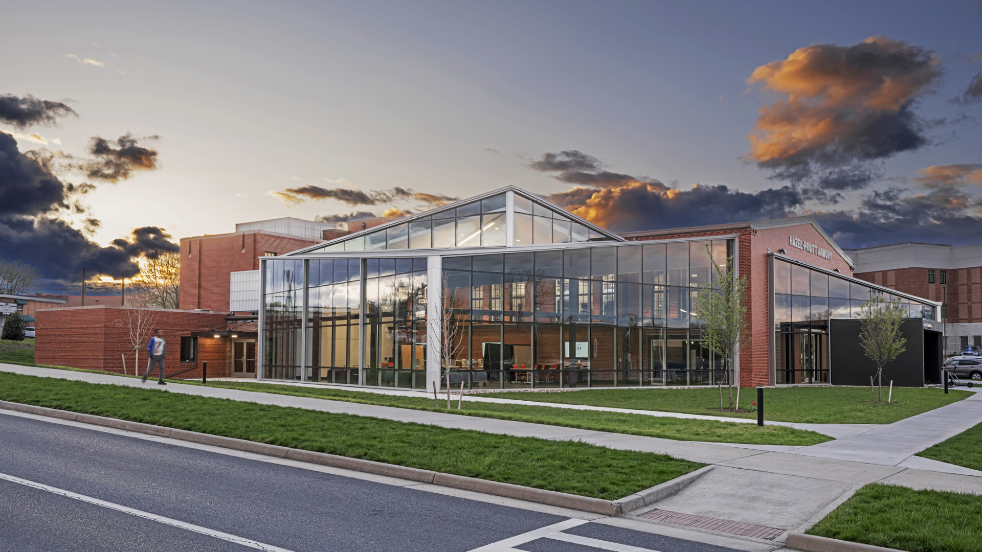 15 - With its striking glass façade and angular roofline, the HIVE’s exterior reflects Shenandoah University’s vision for innovation, community, and connection, anchored in history, designed for the future.