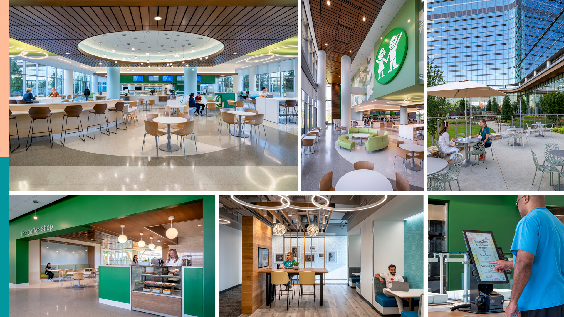 10 - A variety of dining and gathering spaces including a café, coffee shop and outdoor patio enhance comfort, convenience, and community within the hospital environment.