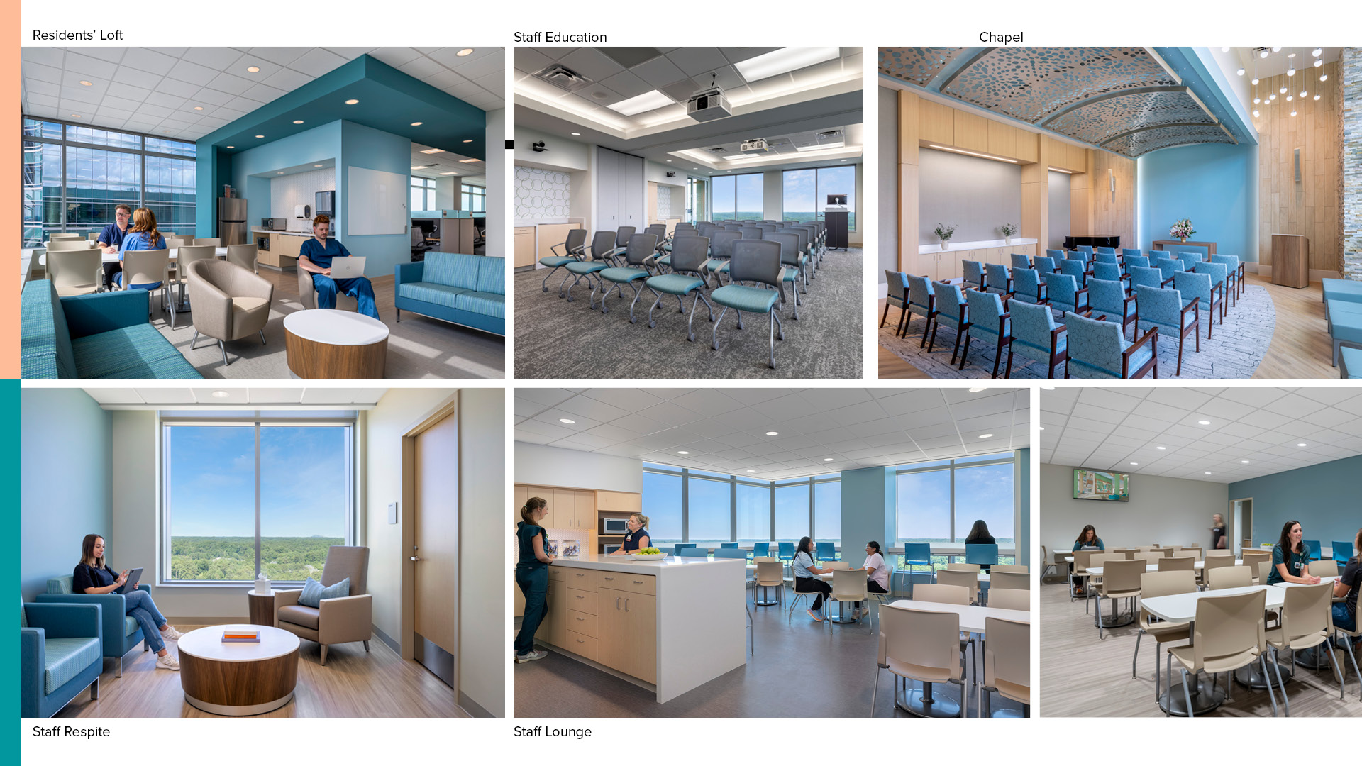- **Staff Well-being** \n Dedicated staff lounges and collaboration areas promote caregiver wellness, job satisfaction, and resilience—essential for high-quality patient care.