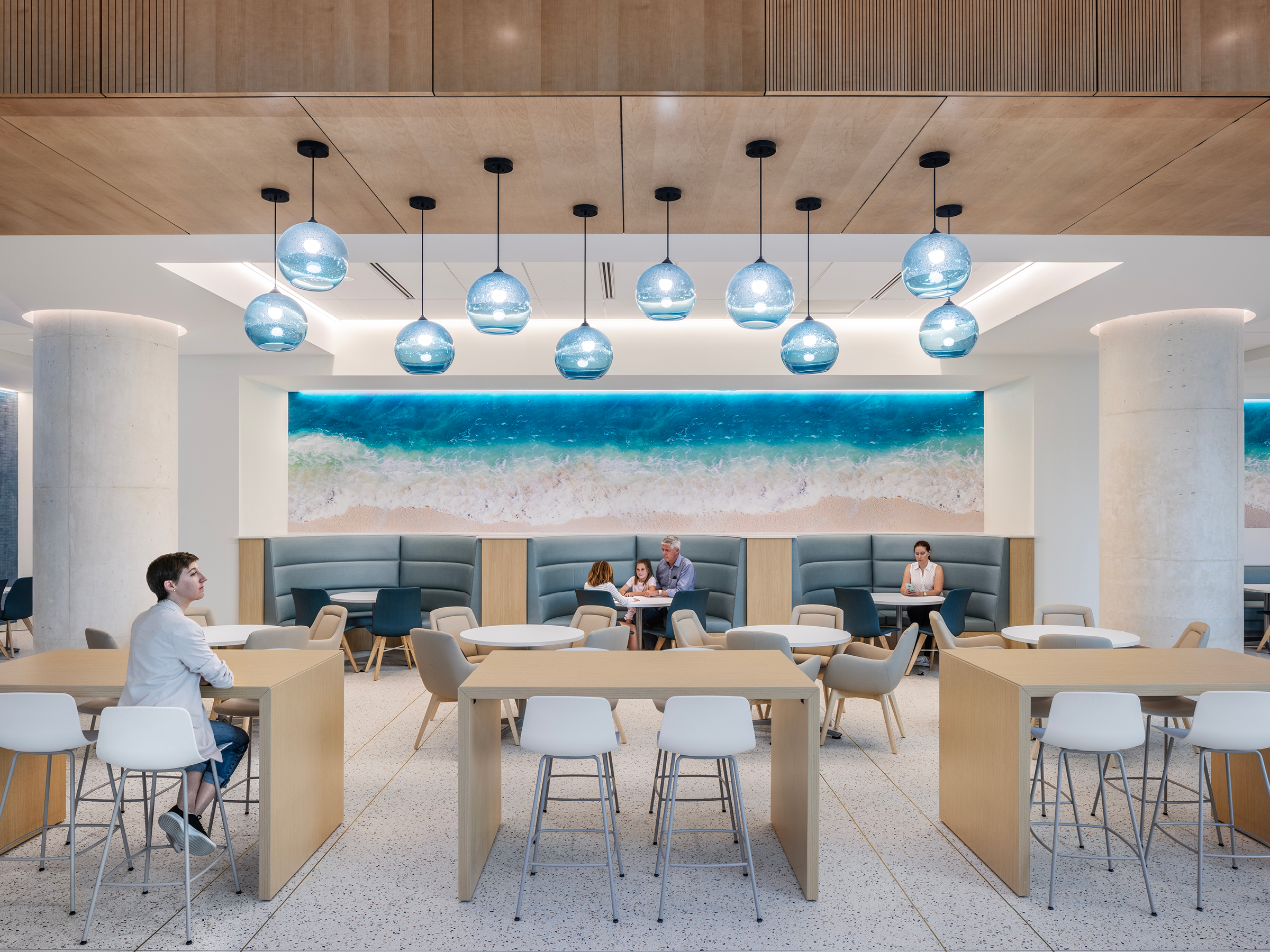 - Glass on the lower floors is imprinted with a custom bird-safe frit pattern designed to minimize collisions, using more than 400,000 dots.
