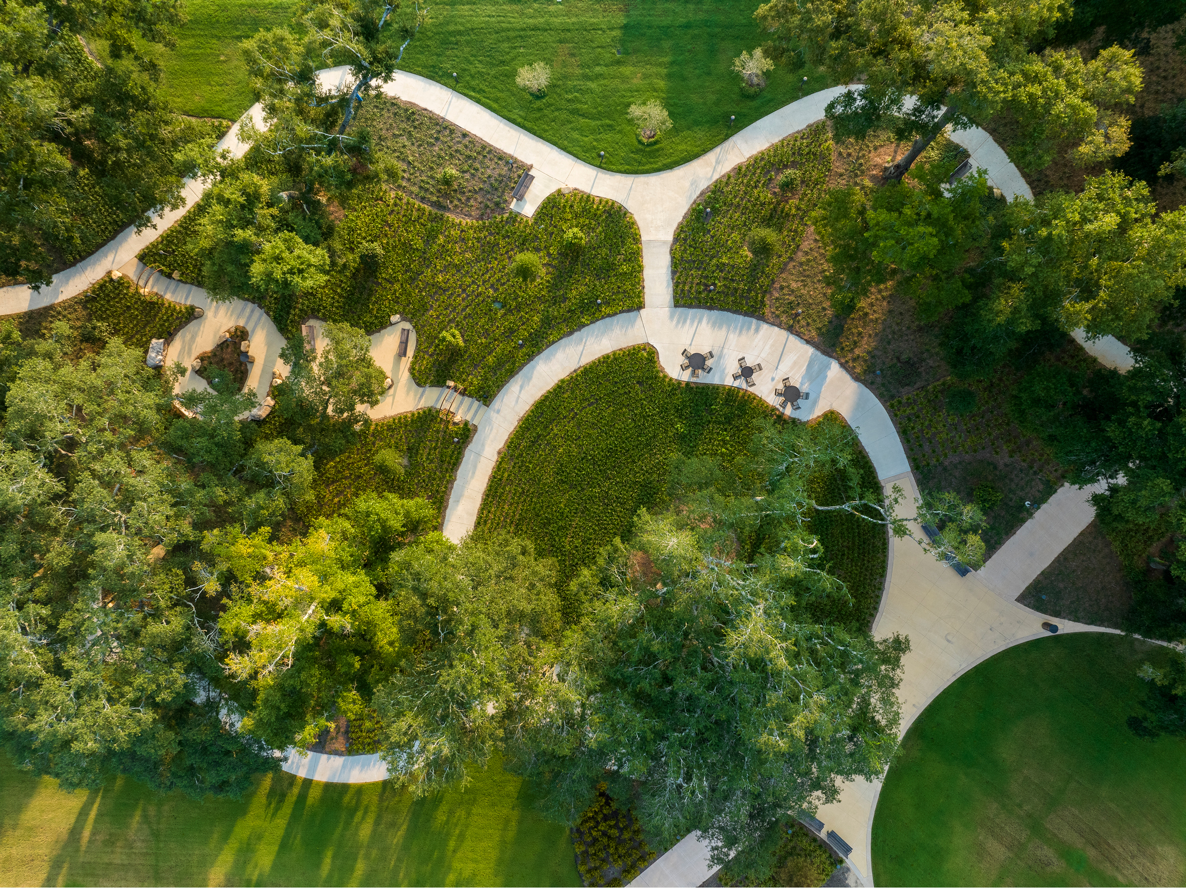 - Amenities include rehab walking trails, healing gardens, sculptures by local artists, exercise lawns, benches and lunch tables.