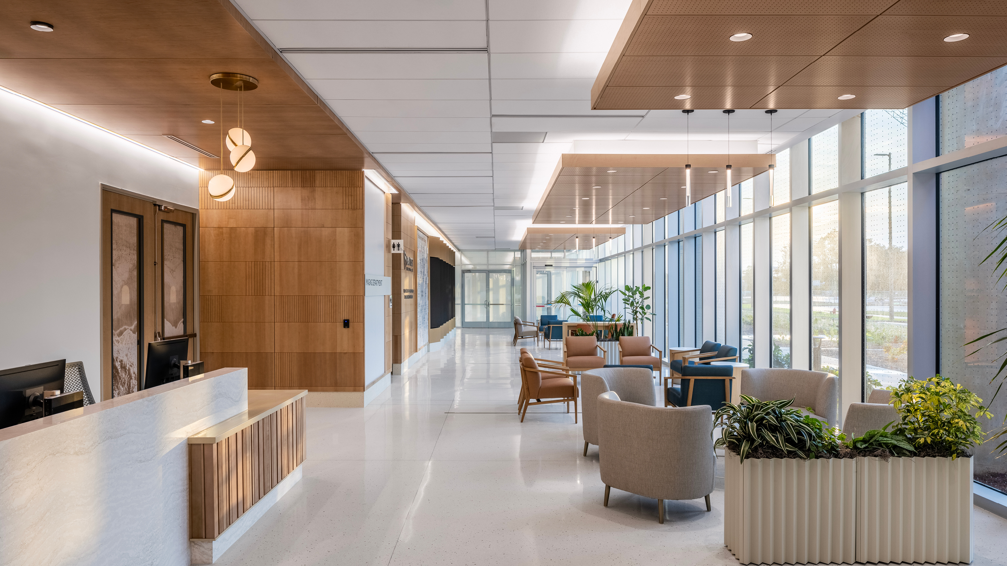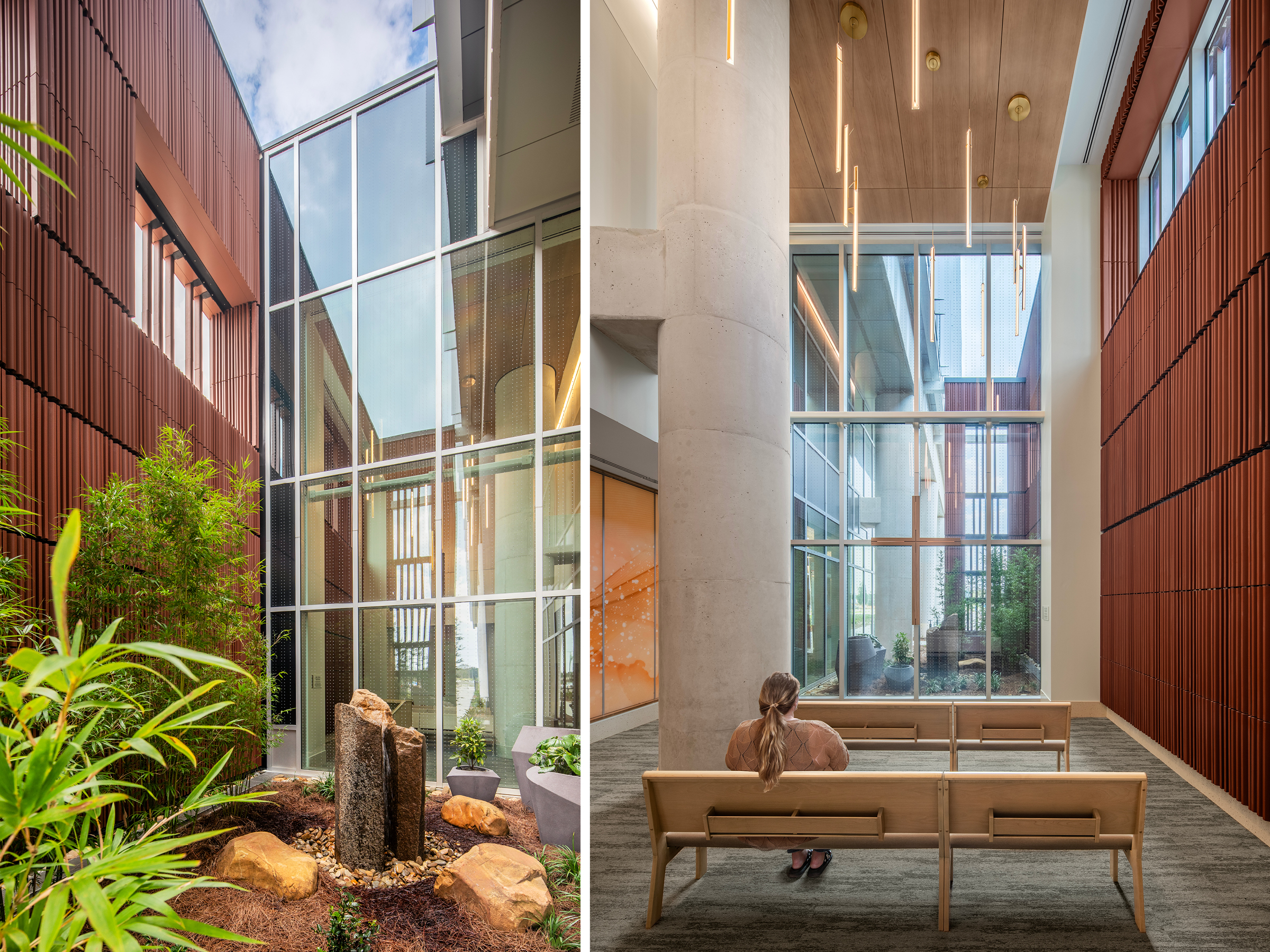 - Nature serves as a wayfinding tactic so visitors inside the facility always know where they are by simply looking out the window.