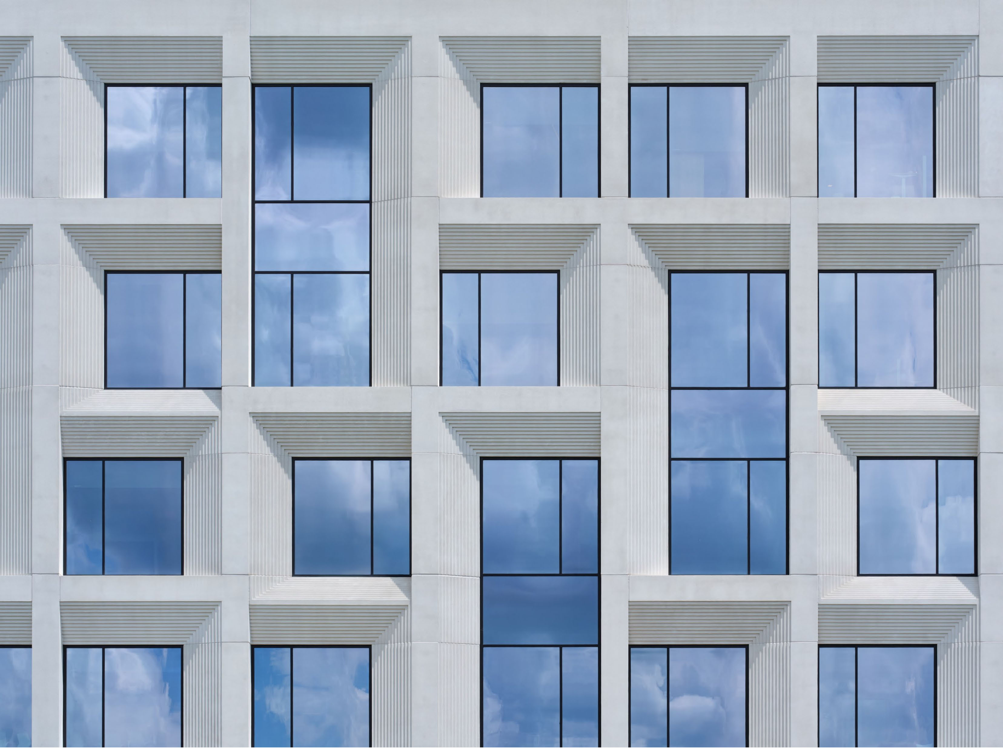 The buildings are an architectural expression of the two ancient Greek interpretations of time: Kronos and Kairos. Kronos refers to measured, sequential, and linear time while Kairos refers to moments of transformational intervention. The design concept for the building explores how life is defined by both Kronos and Kairos. The measured passing of time in Kronos is expressed in the rhythmic vertical articulation of the façade while the transformational interventions that define Kairos are expressed in playful, irregular chamfered recesses. Stepped concrete chamfers create depth in the façade and highlight the life altering moments of Kronos.