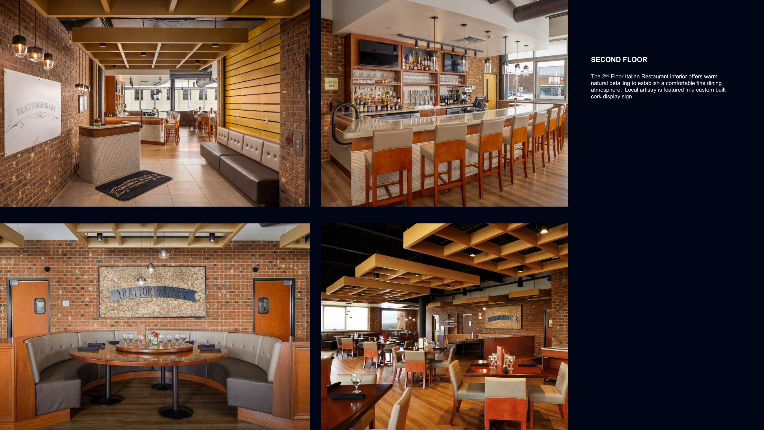 10. The 2nd Floor Italian Restaurant interior offers warm natural detailing to establish a comfortable fine dining atmosphere.