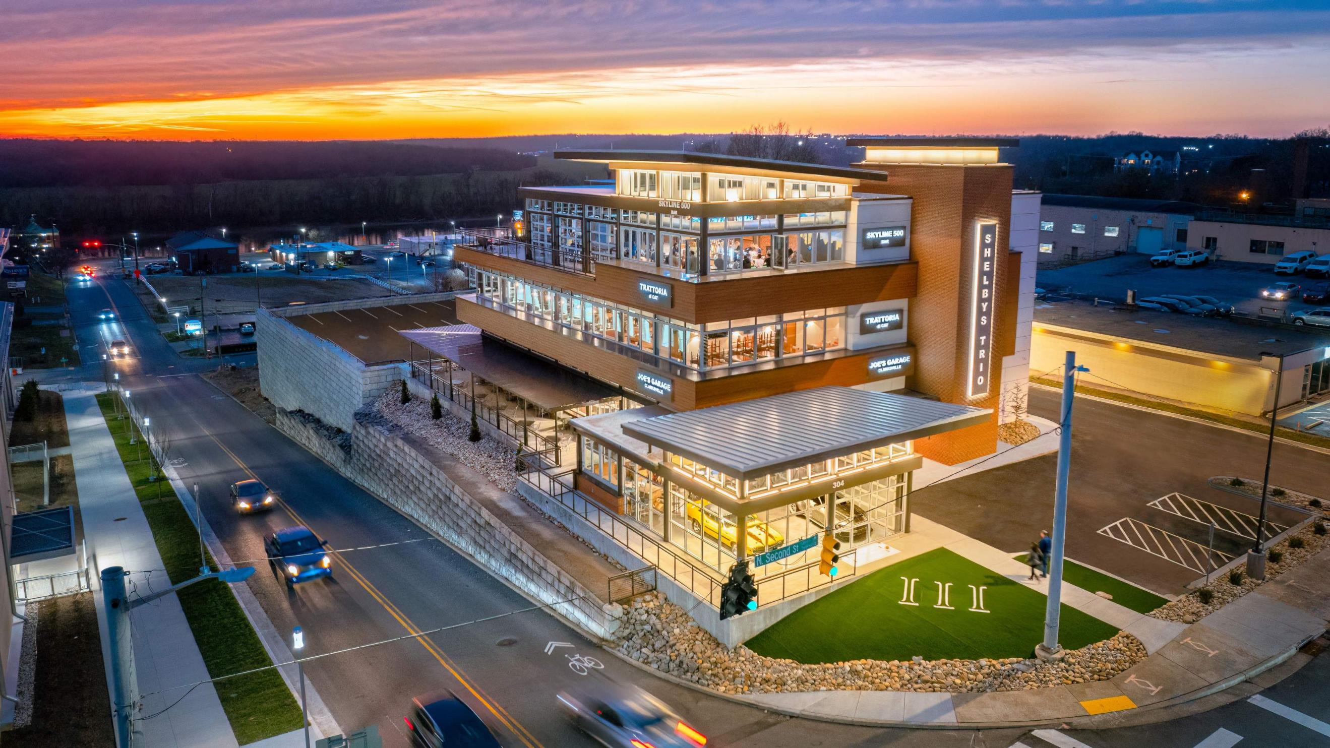 14. Aerial sunset view with the Cumberland River in the background.