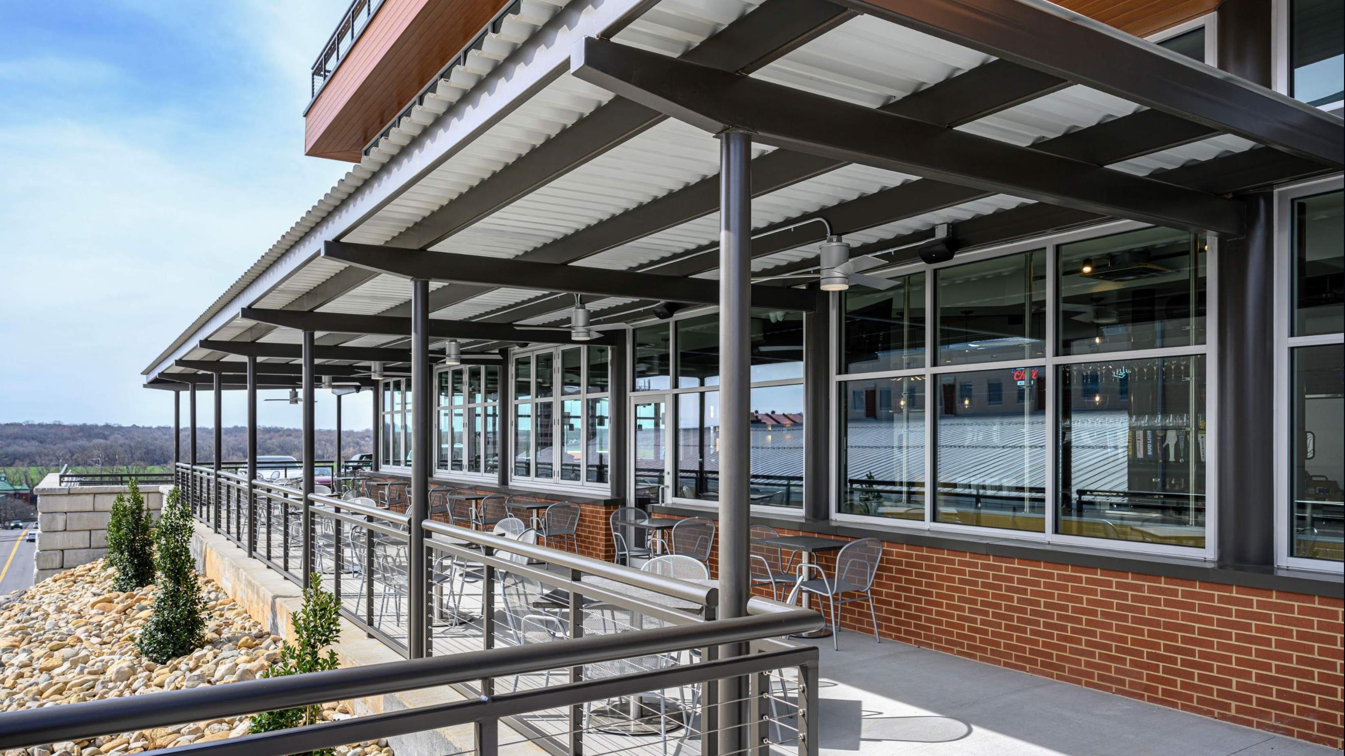 Lastly, the products selected were chosen in homage of the native and historic materials of this area. Brick, warm wood, and continual operable openings at each level that guests can engage with a range of palette and experience the building in a variety of ways. The design of the building also was done in such a way to maximize outdoor views and natural lighting into the dining spaces, as well as provide the opportunity of outdoor dining if so desired via operable windows, rollup doors, or collapsible window-wall systems.