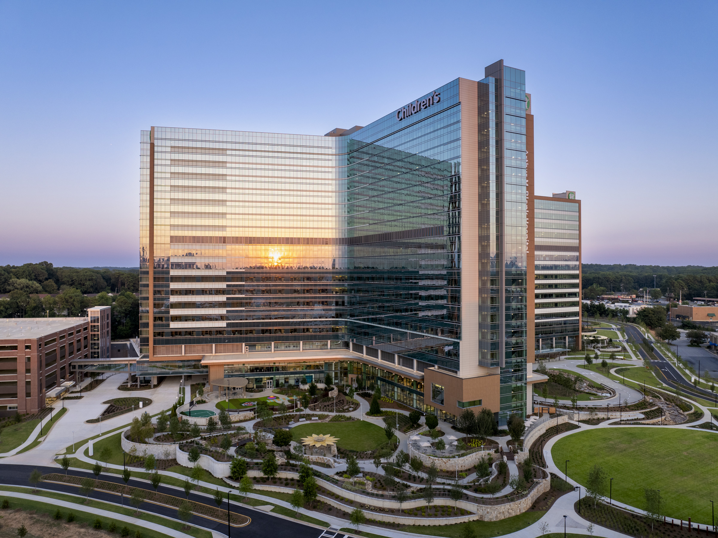 Children’s Healthcare of Atlanta Arthur M. Blank Hospital opened its doors on September 29, 2024, and is more than a 19-story, 2-million-square-foot facility, it’s a beacon of hope and innovation. The new hospital paves the way for cutting-edge care and a healthier future for generations to come. With more than 70 acres, including more than 20 acres of green space, the campus includes miles of walking trails and provides healing views that can be viewed from patient rooms.