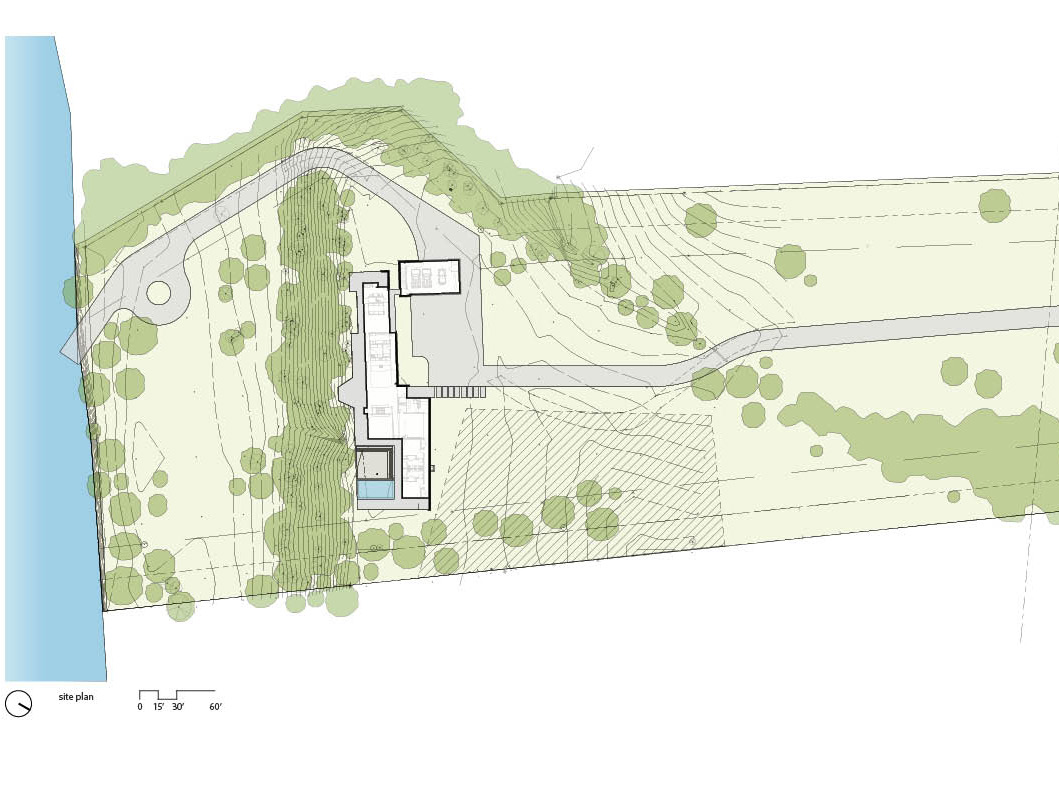 3- An overhead view of the residences’ placement within the hillside and its relationship to the river.