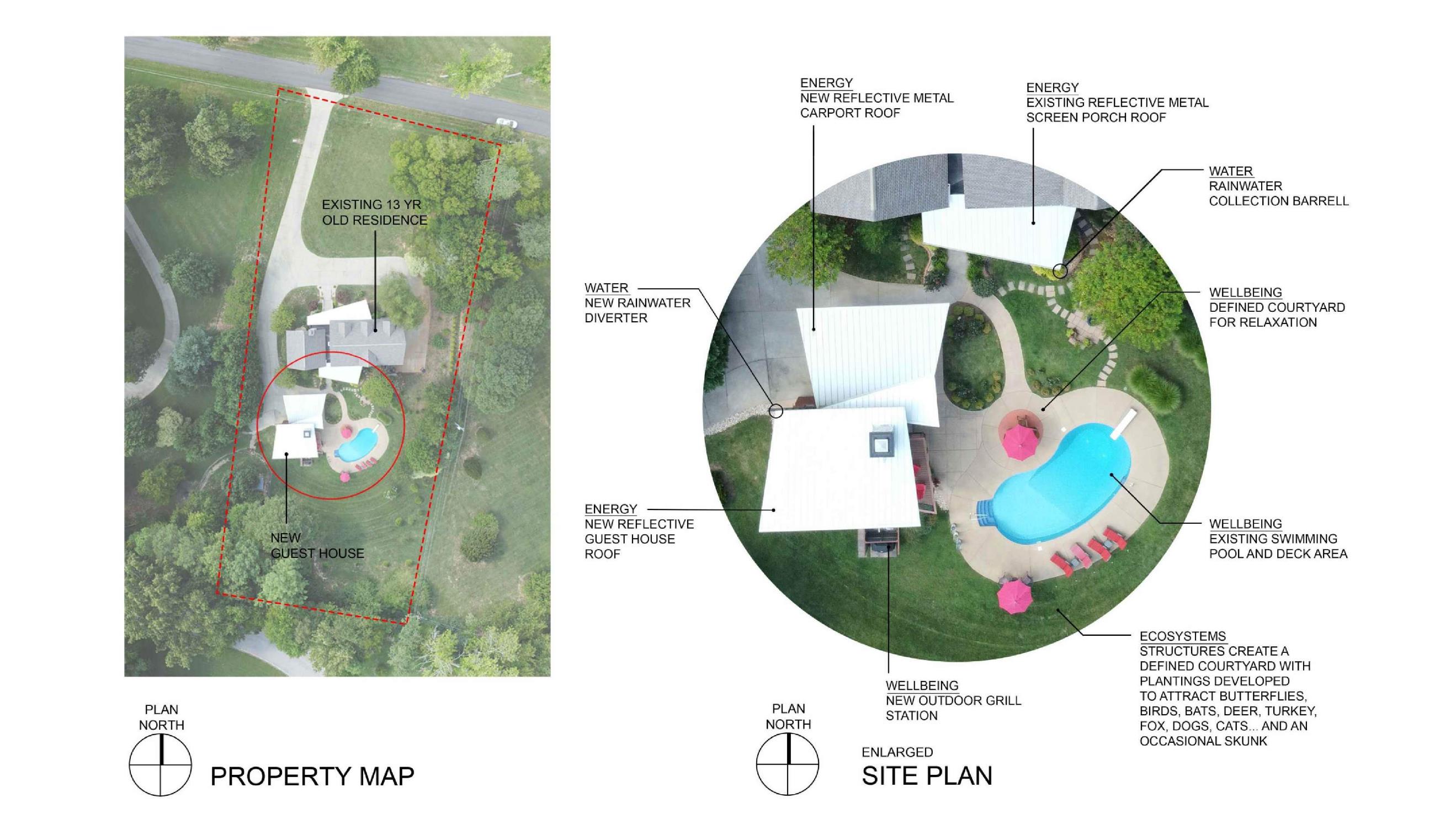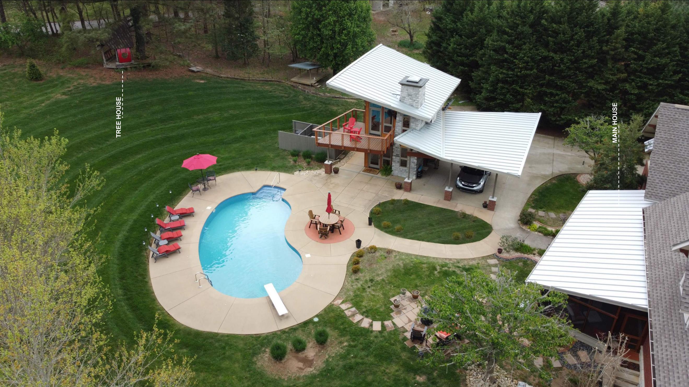 5. Backyard overview of existing residence, treehouse, and new Guest House.