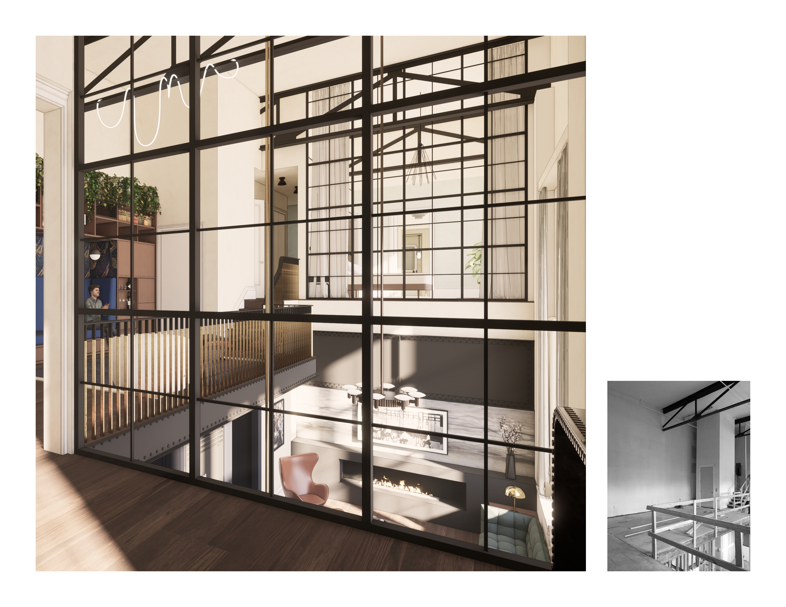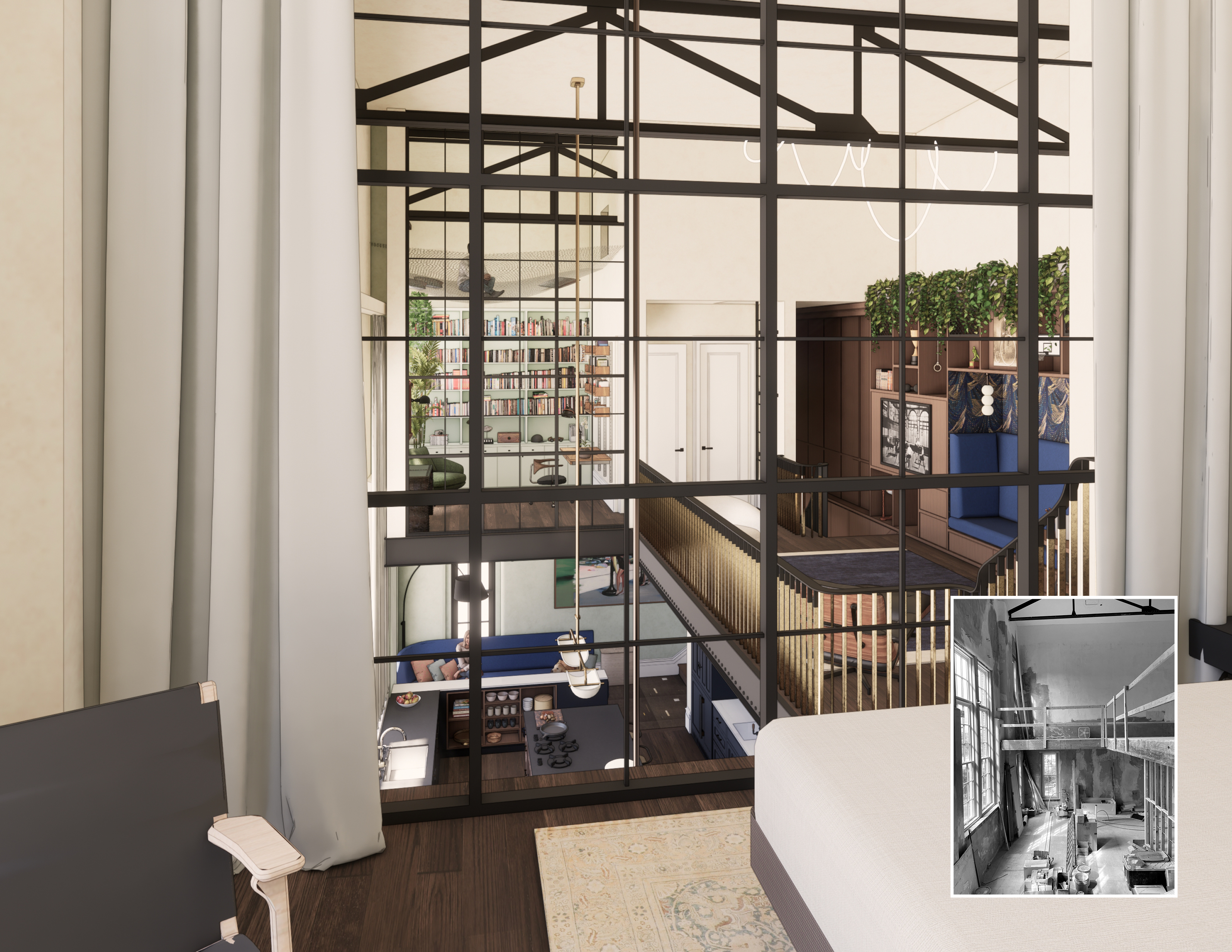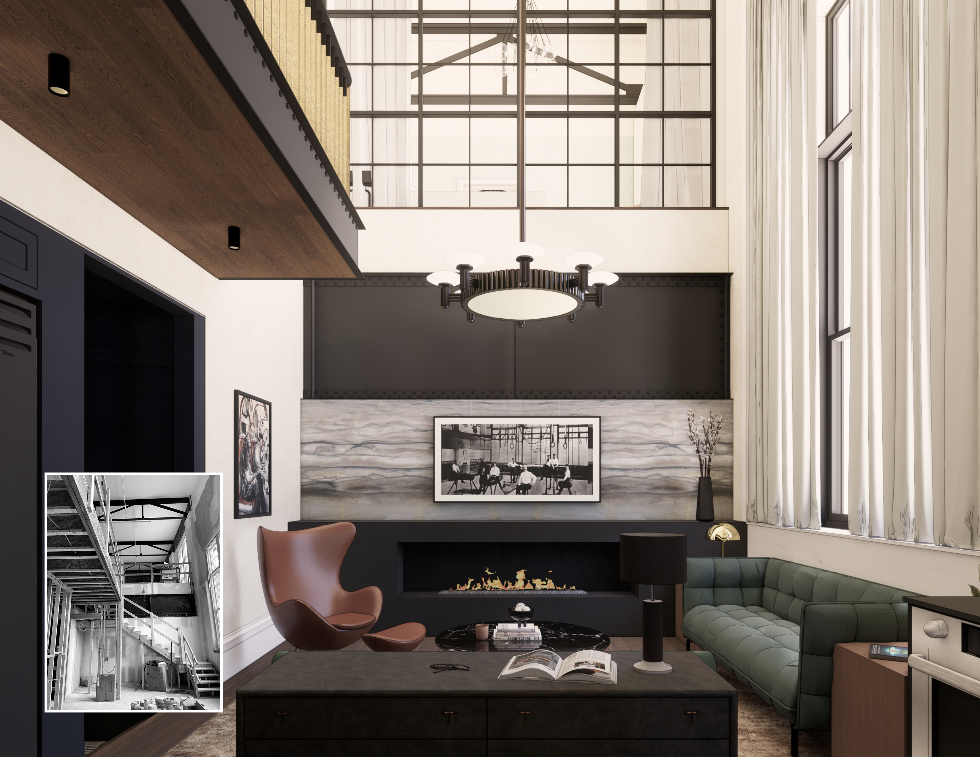 **The principles of our design and approach to this renovation were to respect the existing historical relevance to the overall development while providing a modern live/work style approach to condo living.**