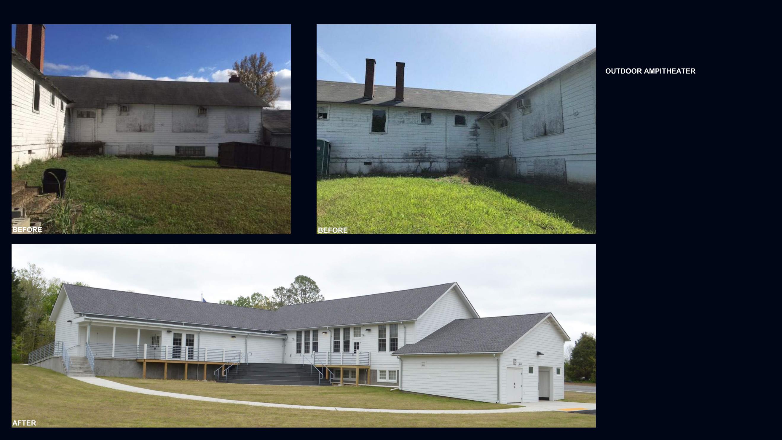This master plan is providing resources for an area that is often overlooked and passed over for county development. The facility is open to the public with intentionally low daily rental rates for gatherings such as weddings, reunions, church services, small concerts, small trade shows, etc. This building has reclaimed itself as the center and focus of its community after nearly being demolished from years of neglect and has simultaneously lifted the community around it.