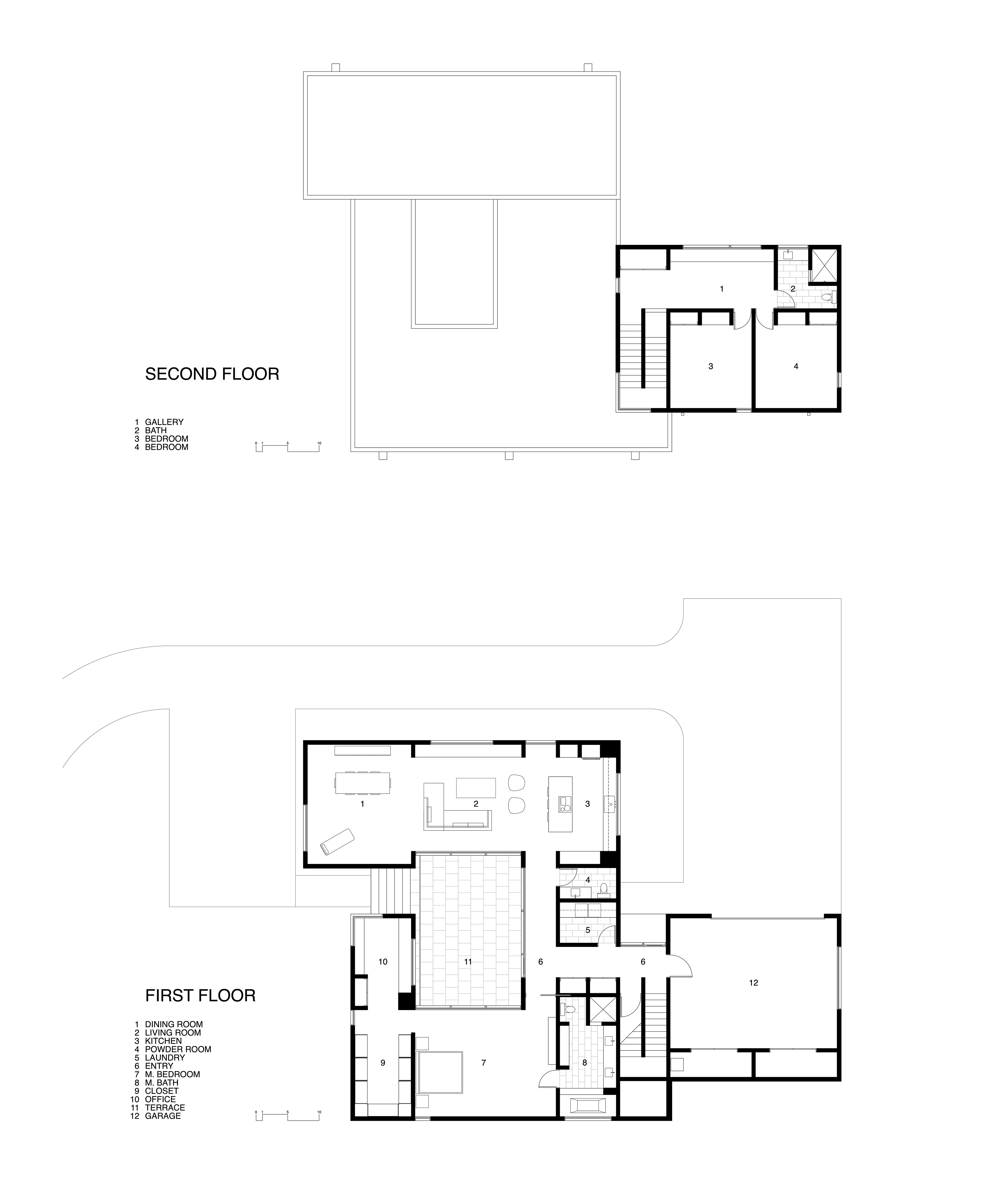 The program was to design a 3400 square foot residence. The living spaces on the main floor are composed around an external courtyard.