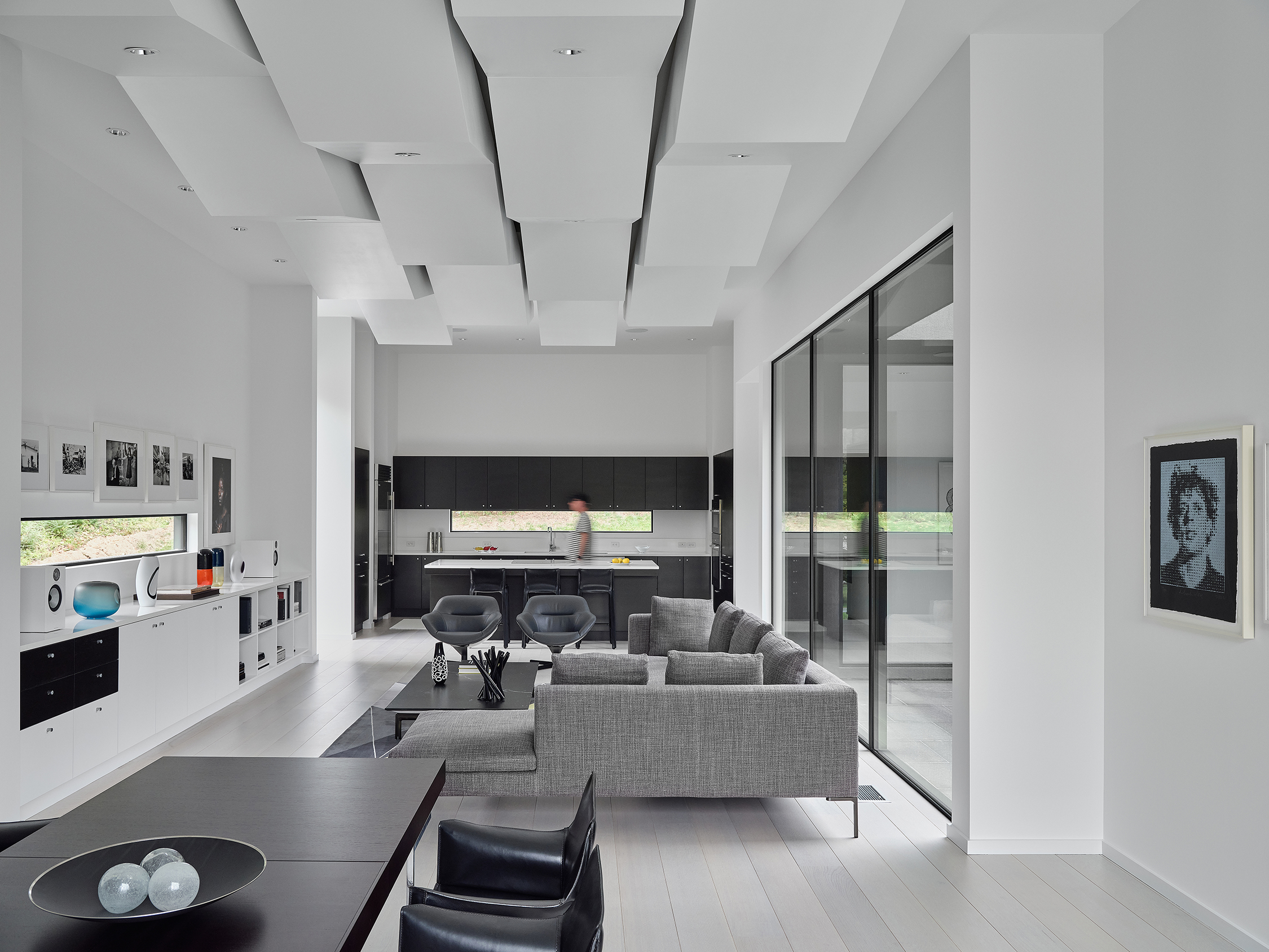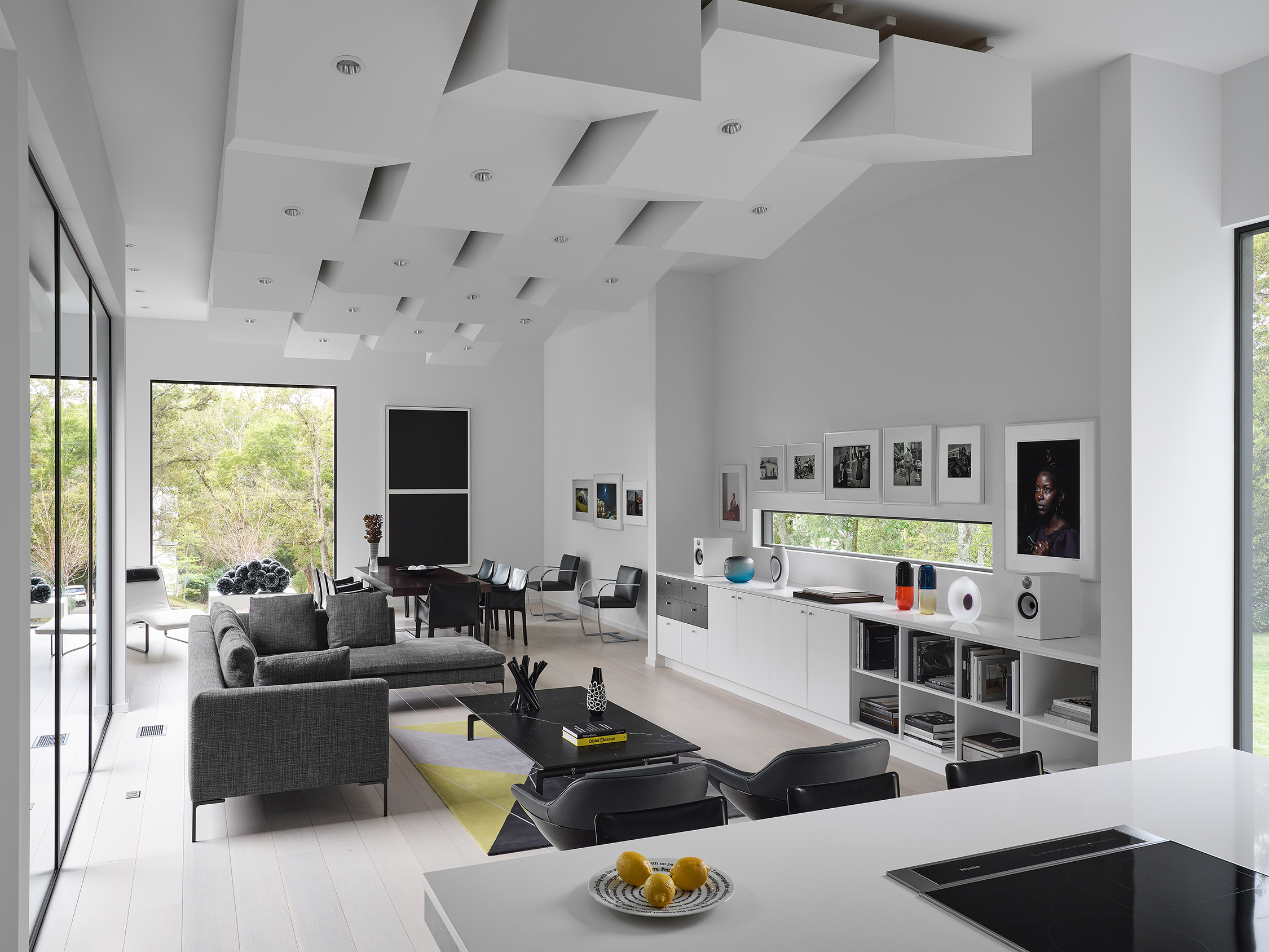 The interior was designed to create a cohesive and neutral setting for the owner’s art