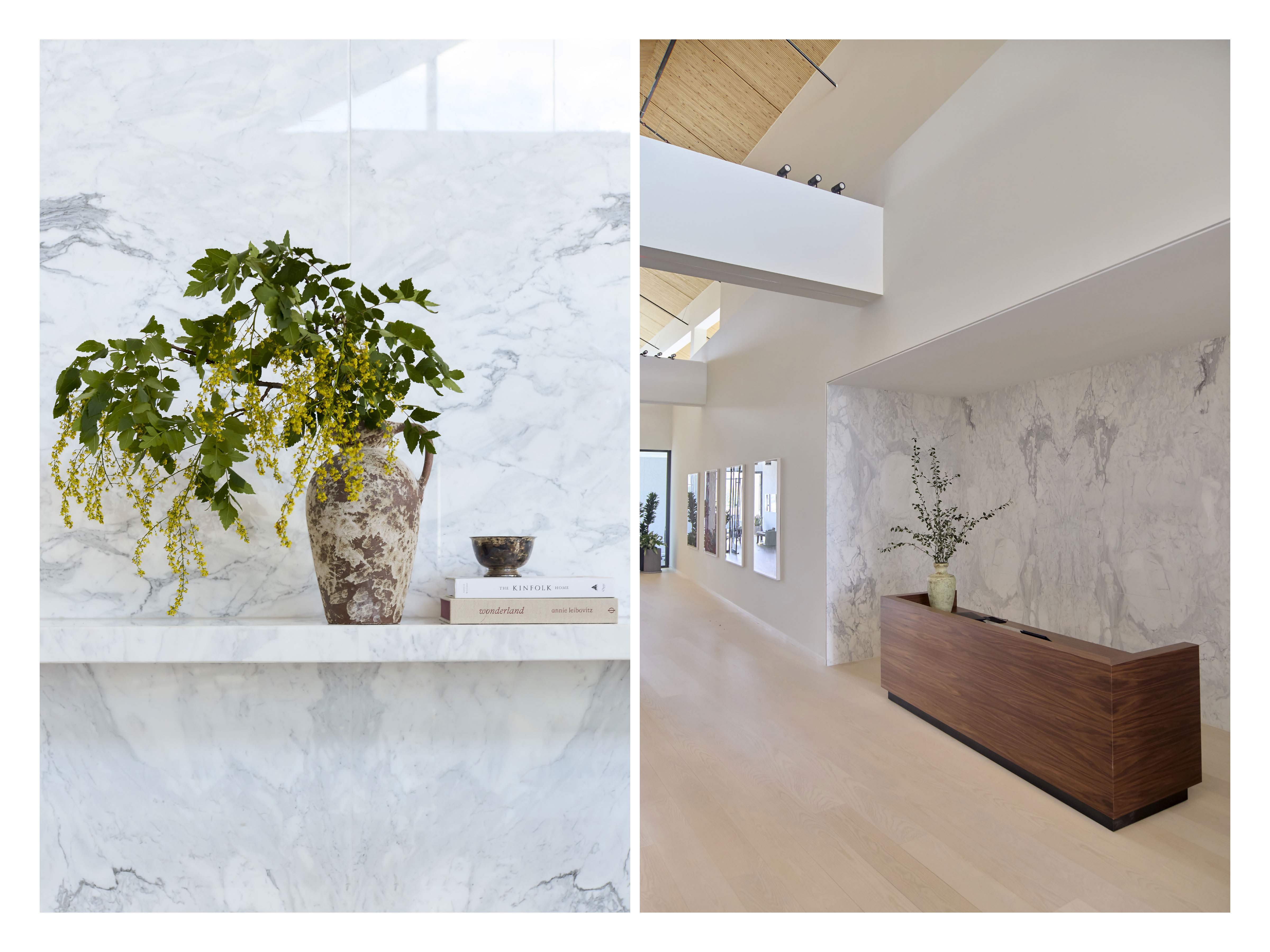 4. Rich walnut paired with polished stone bring notes of the firms New York origins to the new southern office space.