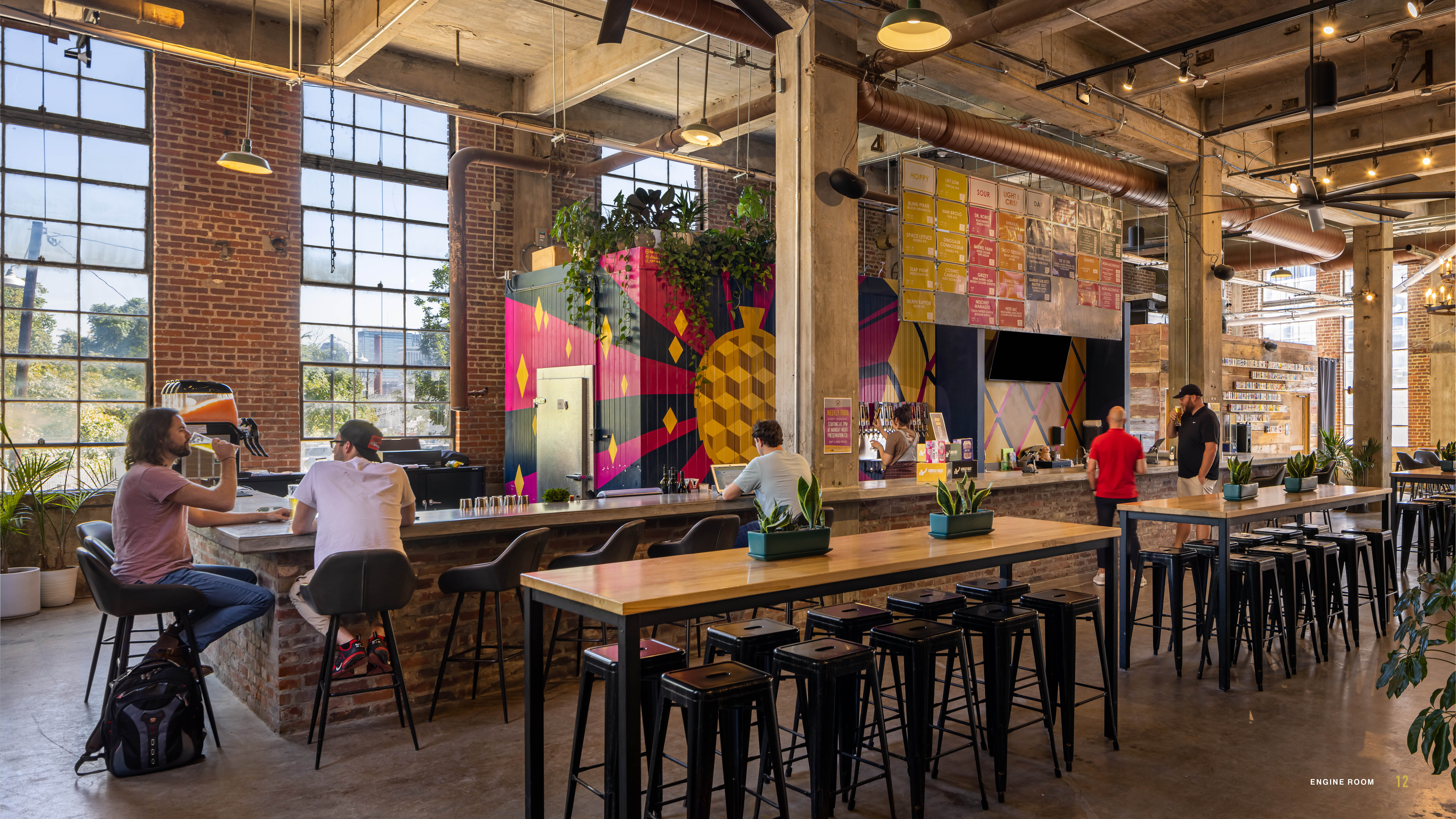 Image 6 – As the inaugural tenant of the Neuhoff District, the adaptive reuse of the Boiler Building & Engine Room into Monday Night Preservation Co. sets the stage for the 13-acre development. Opening its doors while larger construction efforts continued around it, the brewery brought new energy to the campus and helped establish Neuhoff as a destination well before complete buildout.