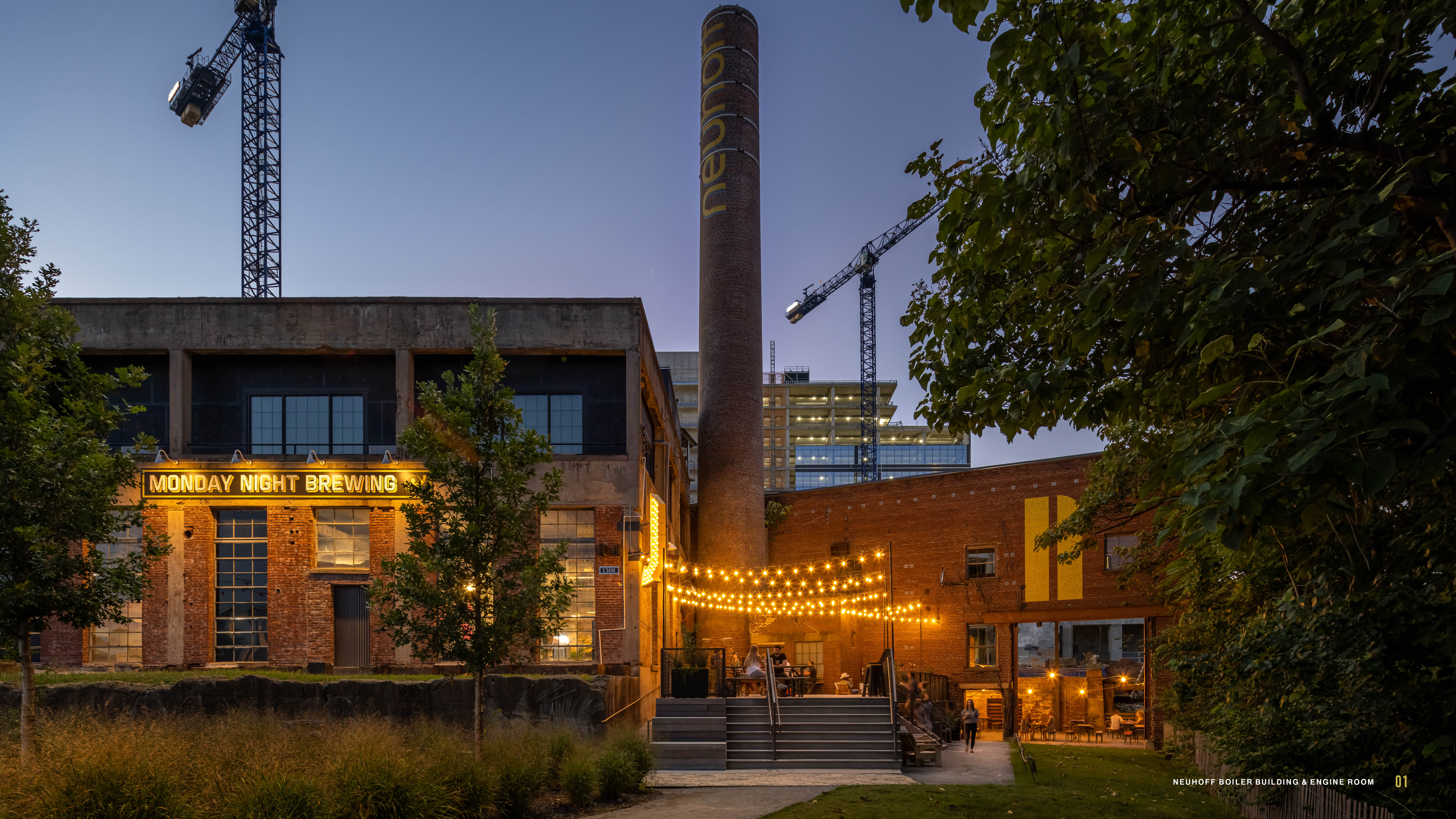 The Neuhoff District redevelopment began with a charrette organized by the McRedmond family, where community leaders, city officials, and other stakeholders collaborated to envision the future of the property. The consensus was clear: Neuhoff’s unique structures and rich history must be preserved. This vision guided the adaptive reuse of the Engine Room and Boiler Building, the current home of Monday Night Preservation Co., and serves as a gateway to the broader redevelopment of the 13-acre Neuhoff District.