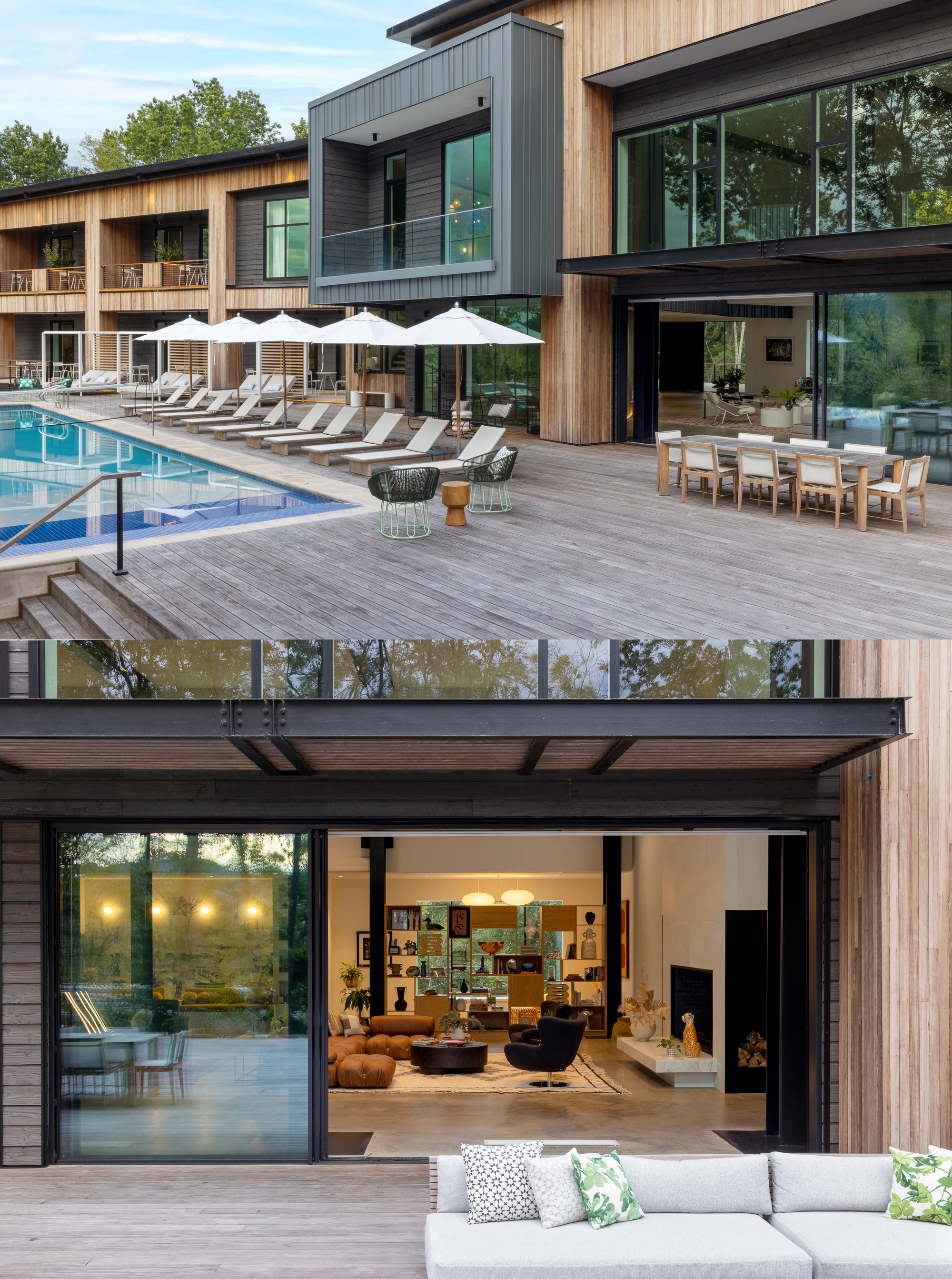 The final estate design reflects the conversation between the design team and owners regarding the importance of modern flexible space, indoor/outdoor connectivity, and sustainability.