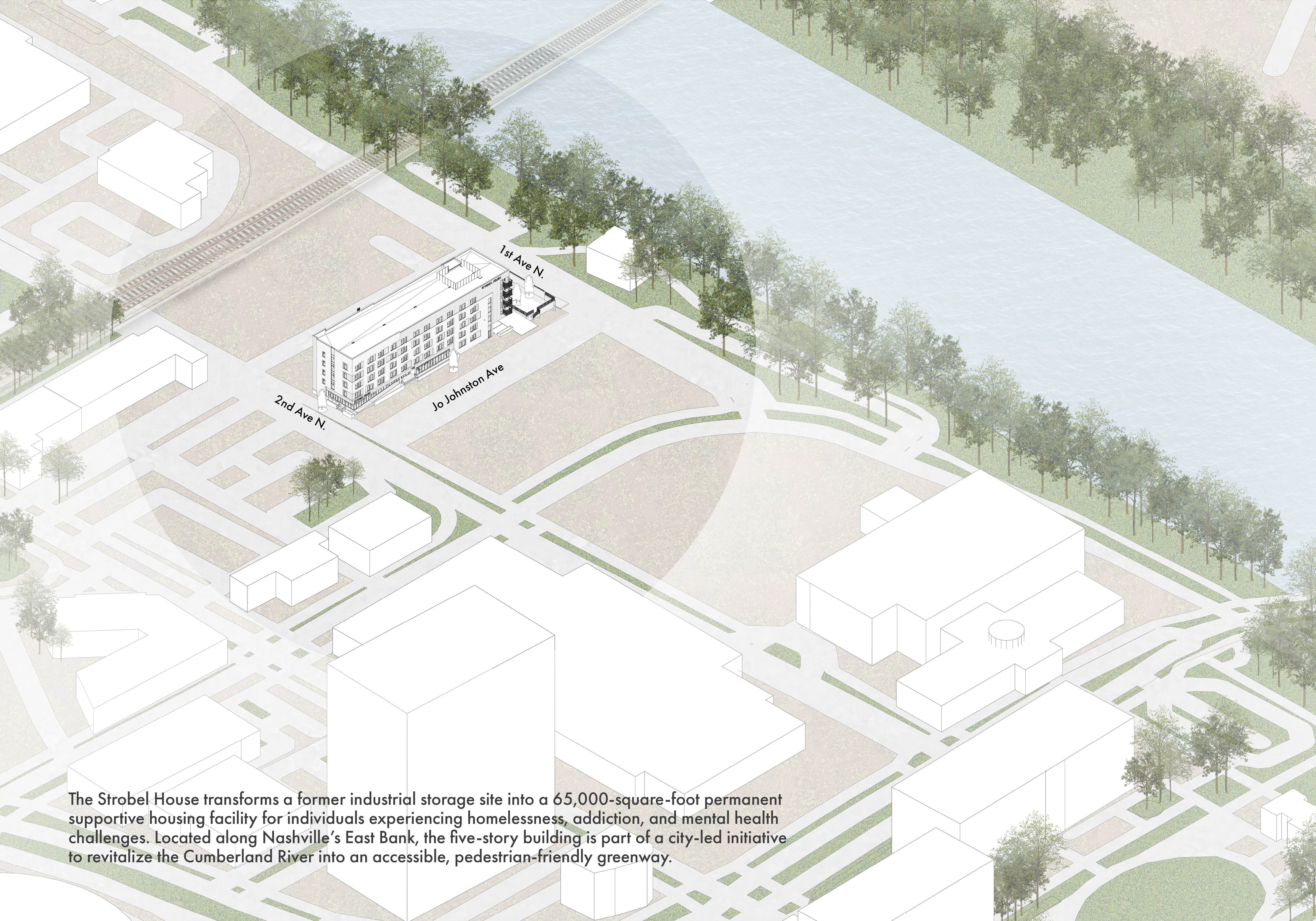 The Strobel House provides permanent supportive housing for individuals experiencing homelessness and stands as the first development in Nashville built specifically for this purpose. This project marks a pivotal moment for the Nashville community, representing a significant step forward in addressing the city's urgent need for stable housing and comprehensive support services.