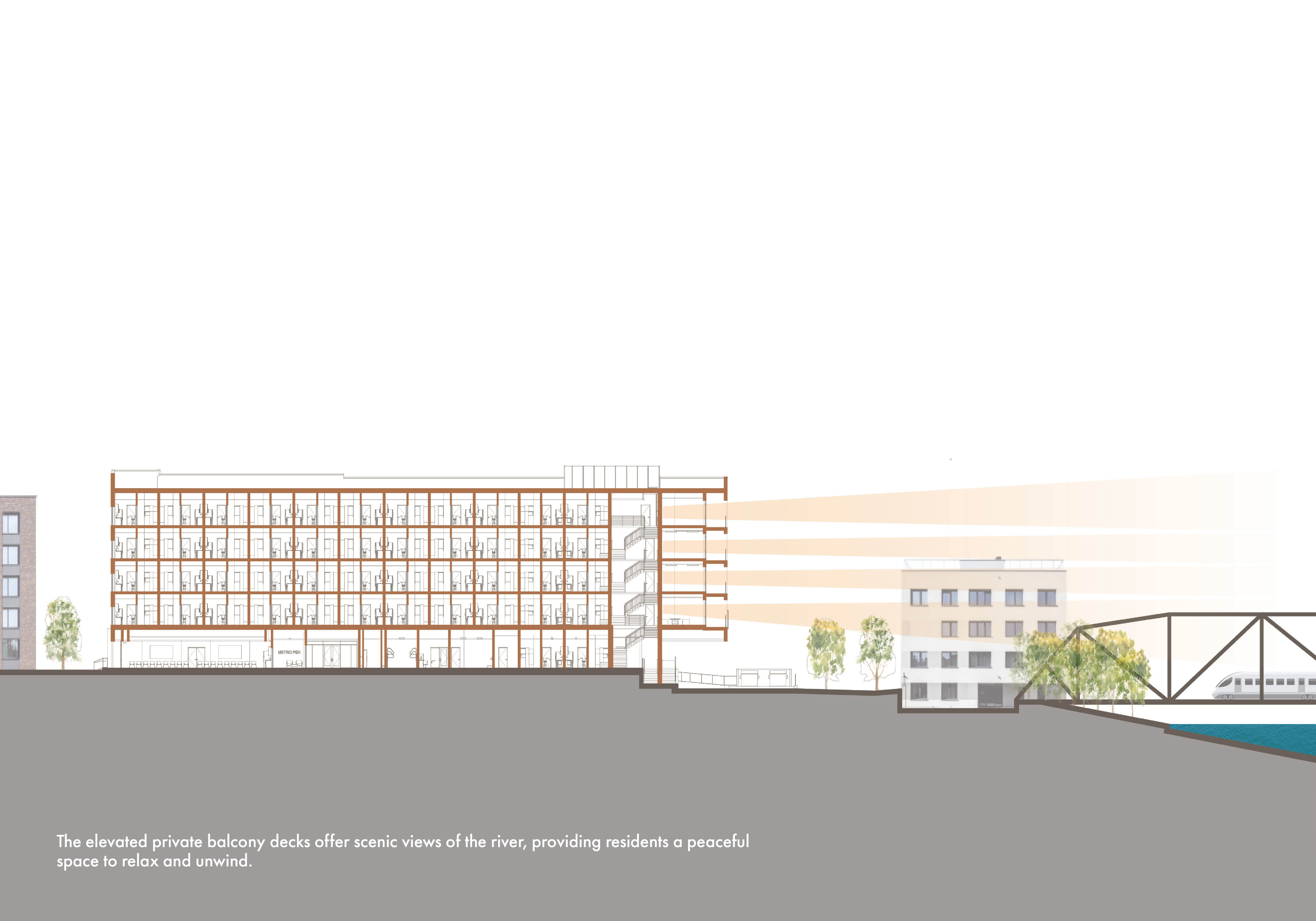 7. Viewing balconies to the river allow residents a space to relax and converse.