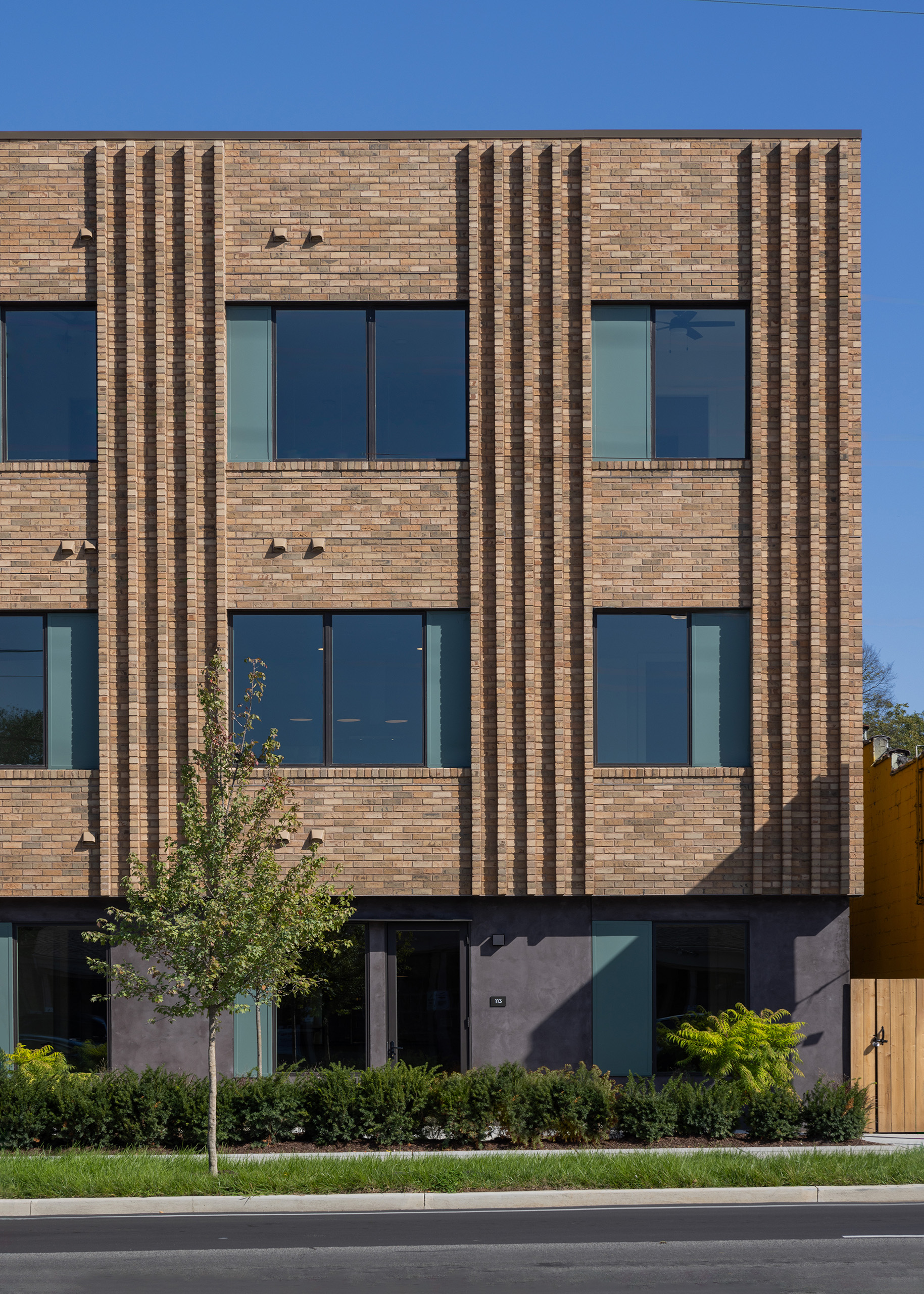 Economy in this project is expressed through a commitment to durable, enduring materials rather than short-term efficiencies. Brick was selected not only for its aesthetic and textural qualities, but for its ability to provide long-term value with minimal maintenance. The molded masonry units ensure a consistent finish across all visible faces, allowing the signature vertical detailing to read with clarity from every angle. Careful attention at critical junctures—window jambs, parapet coping, and structural shelf angles—reinforces this investment and extends the lifespan of the building envelope. By prioritizing craftsmanship and material integrity, the project achieves both visual richness and economic efficiency, ensuring its presence will endure with both relevance and resilience.