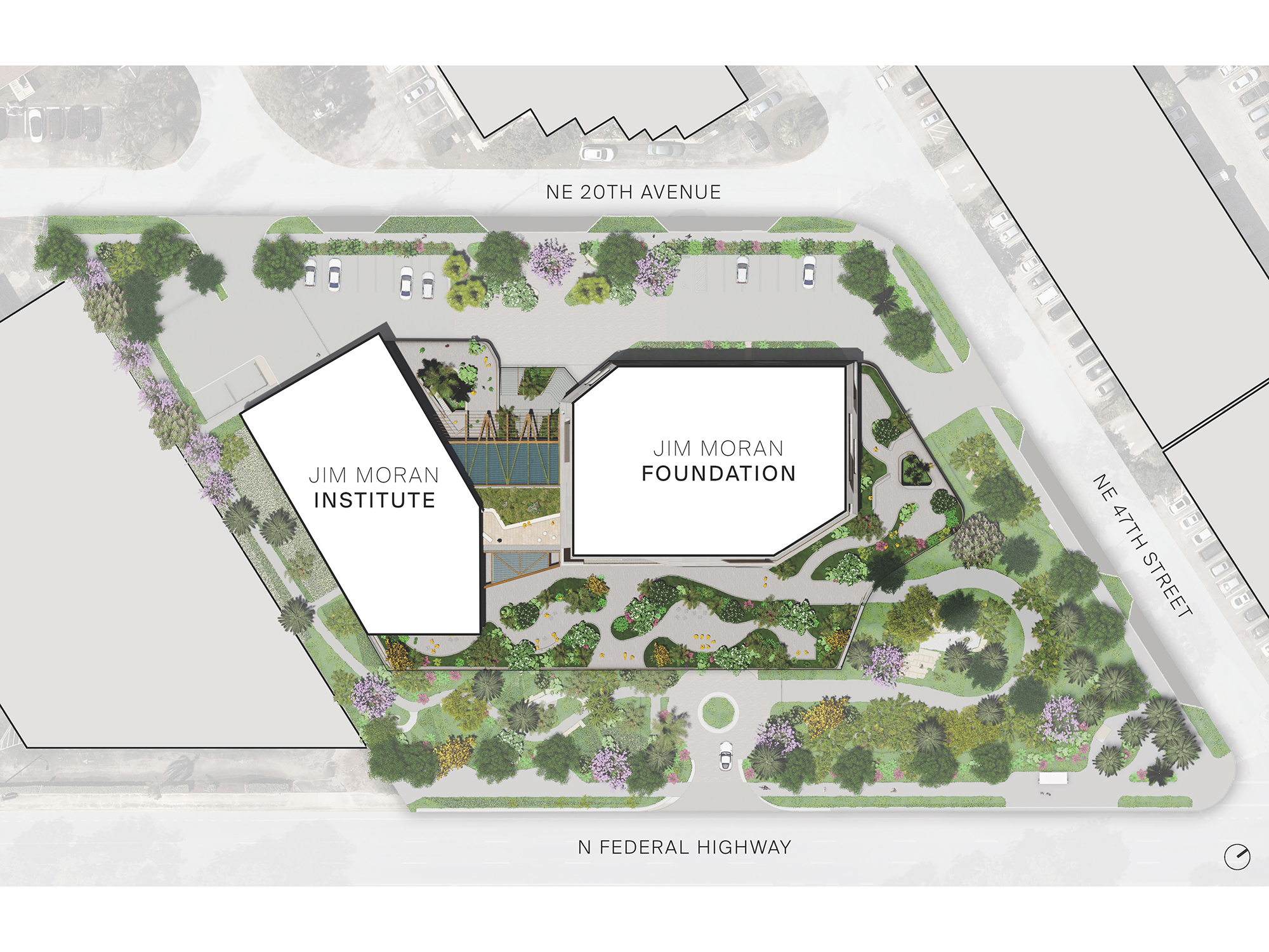 The new campus for the Jim Moran Foundation establishes an architectural identity for the Foundation derived from the visionary legacy of its eponymous founder. Situated in the culturally rich region of South Florida, this project unites the philanthropic endeavors of the Foundation and the entrepreneurial programs of the Institute for Global Entrepreneurship on a single campus. Accentuated by narrative details, responsive forms, and resilient strategies, the Jim Moran Foundation Campus is rooted in its origins but prepared for the future.