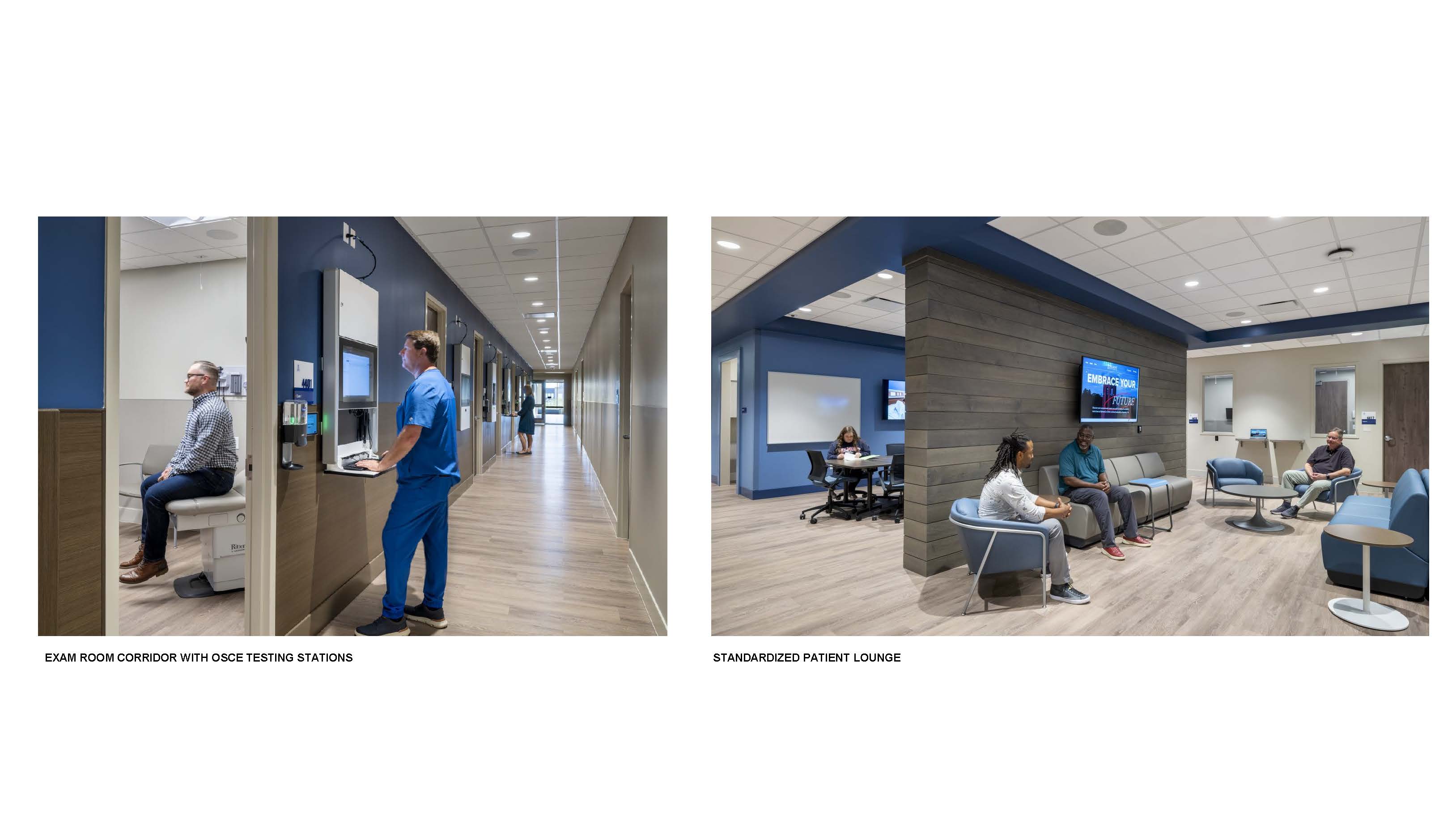 12 - Innovative Objective Structured Clinical Examination (OSCE) corridor and patient lounge designed to support immersive clinical training and seamless standardized patient engagement.